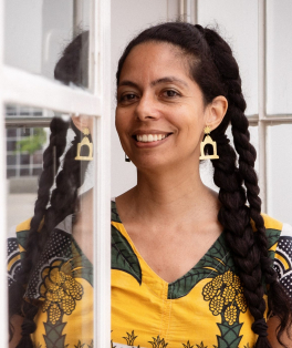 Mulher negra, oriunda da Baixada Fluminense, graduada e mestra em Serviço Social/UFRJ, especialista em Linguagens Artísticas, Cultura e Educação/IFRJ, bacharel e licencianda em Artes Visuais/UERJ e doutoranda no Programa de Pós-graduação de Memória Social/Unirio. Desde 2020, trabalha na organização e pesquisa no arquivo do fotógrafo e ativista Januário Garcia.